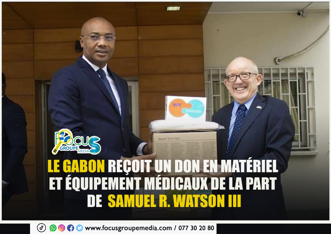 Ce lundi 28 mars 2022, le Ministre de la Santé et des affaires sociales, Dr. Guy Patrick OBIANG NDONG, a réceptionné des mains de Son Excellence Samuel R. Watson III, chargé d’Affaires de l’Ambassade des Etats- Unis d’Amérique près de la République Gabonaise, un important don en matériel et équipement médicaux dans le cadre de l’appui à la riposte contre la Covid-19 dans notre pays.