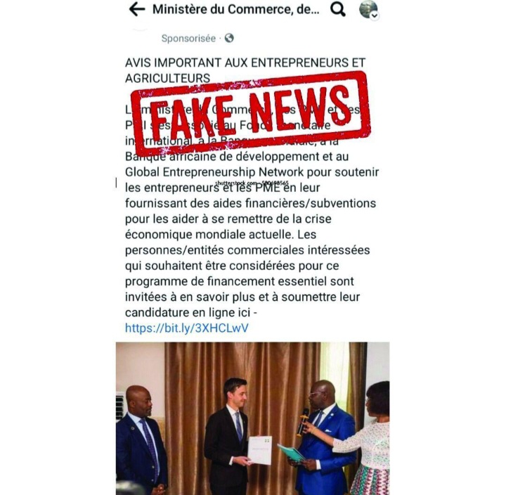 Après vérifications et renseignements auprès du ministère, cette information relève d’un Fake News. Des personnes malveillantes seraient à l’origine de ce message qui fait le tour des réseaux sociaux et n’ émane aucunement du ministère du Commerce, des Petites et moyennes entreprises. Des pratiques à condamner et à banir des réseaux sociaux qui prêtent à confusion et ternissent l’image de l’administration.