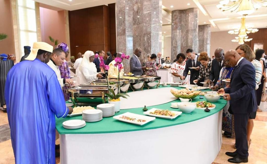 À l’occasion de la célébration de la rupture du jeûne ( Aïd Mabrouk) symbolisant la fin du Ramadan dont été soumis l’ensemble de la communauté musulmane à travers le monde, le Raïs Ali Bongo ONDIMBA, Président de la République, a offert un copieux repas à l’ensemble des musulmans de notre pays en présence du Premier ministre Chef du gouvernement, les membres du gouvernement, les présidents des institutions, le corps diplomatique ainsi que les représentants des différentes obédiences religieuses dans notre pays.