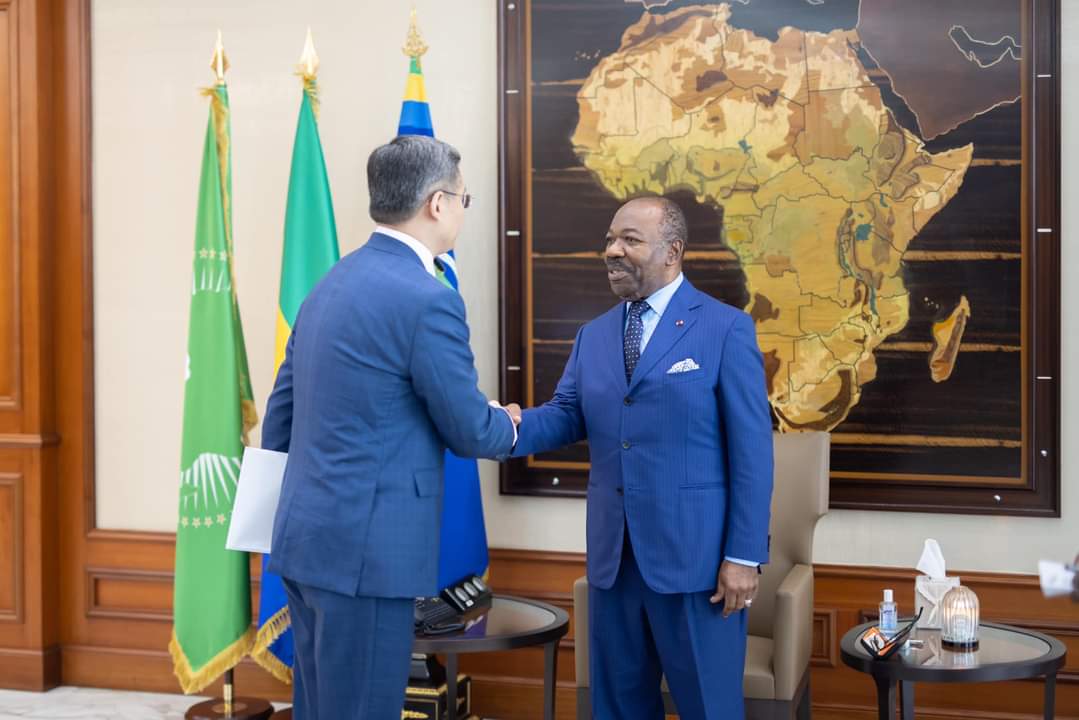 »A noter que les deux pays dont les liens diplomatiques remontent à 1974 ont consenti à travailler d’Accord Parties pour approfondir leur confiance mutuelle au bénéfice de leurs peuples respectifs et hisser leurs liens bilatéraux à un niveau toujours plus élevé.Leurs Excellences Ali Bongo Ondimba et Li Jinjin ont exprimé au terme du tête- à-tête leur volonté de raffermir les relations bilatérales entre le Gabon et la Chine ».