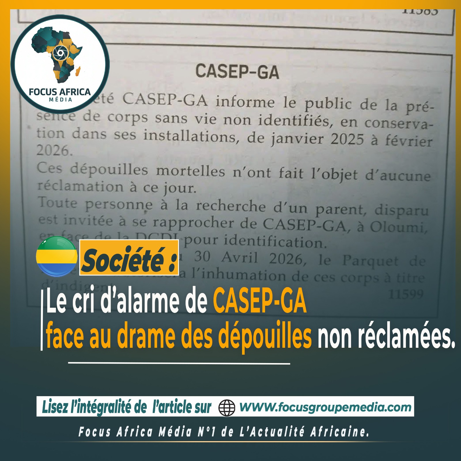 L’opérateur funéraire d’Oloumi, situé face à la DGDI, en appelle désormais à la responsabilité collective pour redonner une identité et une dignité à ces oubliés.L’ultimatum est désormais fixé au 30 avril 2026. Passé ce délai, le Parquet de Libreville autorisera l’inhumation de ces corps sous le statut d’indigent. Cette procédure juridique, bien que nécessaire pour désengorger les installations de CASEP-GA, souligne les limites du système actuel. Pour les observateurs, cette situation récurrente met en lumière l’insuffisance des capacités de stockage public et le manque de coordination entre les services hospitaliers, les services d’identification judiciaire et les pompes funèbres. L’inhumation à titre d’indigent reste l’ultime recours d’une administration confrontée à l’anonymat de la mort.Au-delà de l’aspect technique, ce dossier repose la question de la modernisation des infrastructures mortuaires au Gabon.