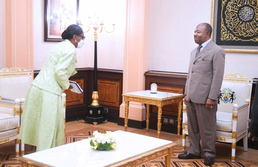 Ce jeudi 05 mai 2022, le Président de la République, Chef de l’État, Ali BONGO ONDIMBA, a accordé une audience à la Mairesse de la Commune de Libreville, Christine Mba Ndutume, venue lui faire un état des lieux de la ville de Libreville, notamment l’assainissement, la lutte contre l’insalubrité.