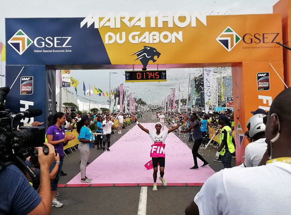 Le Marathon du Gabon-GSEZ a débuté aujourd’hui dans les rues de Libreville ce samedi avec la quatrième victoire consécutive d’Audrey Nynze sur les 5 kilomètres de l’épreuve de la Gabonaise, réservée aux femmes et dédiée à la lutte contre les cancers féminins, en association avec la Fondation Sylvia Bongo Ondimba. Elles étaient près de 6.000 participantes ce matin à  courir sur le célèbre front de mer de la capitale, avec cette même ambiance de fête qui accompagne l’événement depuis sa création en 2013, associée à l’énorme élan de solidarité de la population gabonaise pour la cause défendue par la Fondation de la Première Dame. A 27 ans, Audrey Nynze déjà victorieuse en 2014, 2015 et 2017 en a profité pour battre aujourd’hui le record des 5 kilomètres de Libreville qu’elle détenait elle-même depuis 2015 (en 18’14’’) en réalisant 28 secondes de mieux (en 17’46’’). «En prenant le départ, j’avais bien en tête de battre ce record, a-t-elle déclarée après l’arrivée félicitée par l’ancienne star de l’athlétisme Christine Arron marraine de cette 6e édition de la Gabonaise. J’avais même imaginé que je pouvais faire encore mieux mais la chaleur a commencé à devenir pesante en milieu de course. Comme d’habitude, j’ai pris un départ très rapide qui m’a permis de jauger mes sensations pour la suite de la course. Je suis fière de gagner encore la Gabonaise car c’est un symbole important pour la lutte des femmes contre la maladie.» Audrey Nynze a laissé ses adversaires très loin derrière elle, à 59’’ pour la deuxième Raphaelle Mouanda et 1’03’’ pour la troisième Andresca Ongouta. Sa victoire l’an passé lui avait offert le droit de voyager en France pour le Marathon de Paris en avril dernier grâce au partenaire Air France. Ce qui lui a permis d’acquérir encore plus d’expérience sur les grands événements. «C’était la première fois que je courais un Marathon, j’ai réalisé un temps de 4h08’ avec seulement un mois de préparation dans les jambes. Ça m’encourage maintenant à continuer dans cette voie et trouver des sponsors pour m’accompagner et porter haut les couleurs du Gabon sur des compétitions à l’étranger.» Les épreuves juniors ont également connu un grand succès populaire avec plus de 3.000 participants sur les deux épreuves des deux catégories d’âges. On attend la même ferveur demain matin pour les courses élites 10km et Semi-Marathon ainsi que pour l’épreuve-reine des 42,195 kilomètres du Marathon du Gabon-GSEZ où sont attendus notamment les champions kényans et éthiopiens qui dominent la discipline du Marathon sur tous les continents. BESSEY]]>