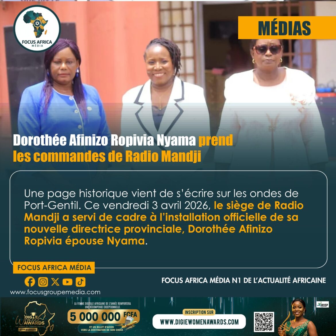 Une page historique vient de s’écrire sur les ondes de Port-Gentil. Ce vendredi 3 avril 2026, le siège de Radio Mandji a servi de cadre à l’installation officielle de sa nouvelle directrice provinciale, Dorothée Afinizo Ropivia épouse Nyama. Nommée lors du Conseil des ministres du 26 février dernier, elle succède à une longue période de transition après le décès de l’emblématique Michel Wora Duchâteau, qui avait tenu les rênes de la station pendant plus de deux décennies.