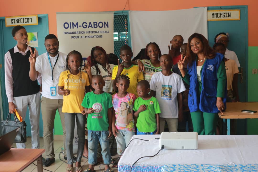Ce Mardi 26 Décembre 2023, l’antenne de l’OIM- GABON, Organisation internationale pour les Migrations de premier plan dans ledit domaine et faisant partie de l’une des agences des Nations Unies, a lancé au Centre d’accueil Arc-en-ciel à Libreville, sa campagne de sensibilisation. Conduite par Josiane MARTINS Épse ELINGUI officier en charge du bureau dans notre pays, la délégation a tenu à se montrer pédagogue auprès des enfants orphelins et des médias.Il s’agit notamment d’un programme conjoint sur la sécurité humaine financé par l’UNTFHS et regroupant quatre (04) agences des Nations Unies au Gabon a été développé et est mis en œuvre depuis octobre 2021: UNICEF, HCR, OIM et ONUDC en raison de leur expertise et leur capacité ainsi que leur engagement continu sur cette thématique au Gabon.
