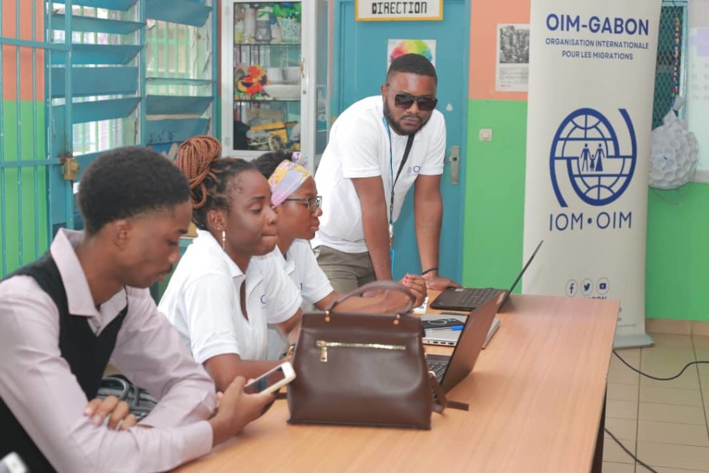 Le Programme conjoint de sécurité humaine vise à renforcer la prévention, la protection et l’autonomisation dans la migration mixte vers le Gabon, y compris la sensibilisation et la formation des migrants en situation de vulnérabilité. Face à ces nouveaux flux migratoires, la réaction du Gabon dans le cadre de ce programme consiste à renforcer ses réponses juridiques et judiciaires, à améliorer les procédures permettant de déterminer le statut légal des personnes qui arrivent, à veiller à ce que les criminels soient sanctionnés, à renforcer sa capacité à protéger et à soutenir les victimes, à aider à l’intégration de ceux qui resteront au Gabon et à favoriser la sensibilisation et l’acceptation au sein de la population locale notamment. C’est dans cette perspective que l’OIM accompagne le gouvernement dans l’atteindre du résultat 2.1 : Les migrants et les réfugiés sont mieux intégrés socio-économiquement dans la société gabonaise et la cohésion sociale globale est renforcée. De façon pratique, cet appui de l’OIM est matérialisé par la campagne d’éducation, de sensibilisation et d’information du public sur la prévention de la traite des êtres humains, les deux Pactes mondiaux et le cadre de sécurité humaine lancée depuis le 28 novembre 2023 et mise en œuvre/coordonnée par l’agence de communication EXOPUB.