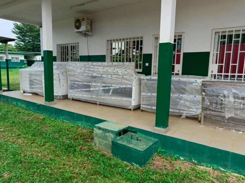 Dans le cadre du financement de la Banque Africaine de Développement, le Directeur Régional de Santé vient de recevoir pour le compte de l’Ecole Provinciale de Formation et d’Action Sociale et Sanitaire, le premier conteneur des équipements de la clinique interne.Lors de sa dernière visite à Mouila, le Ministre de la Santé, le Pr Adrien MOUGOUGOU avait annoncé l’arrivée progressive à partir de janvier 2024, des équipements.