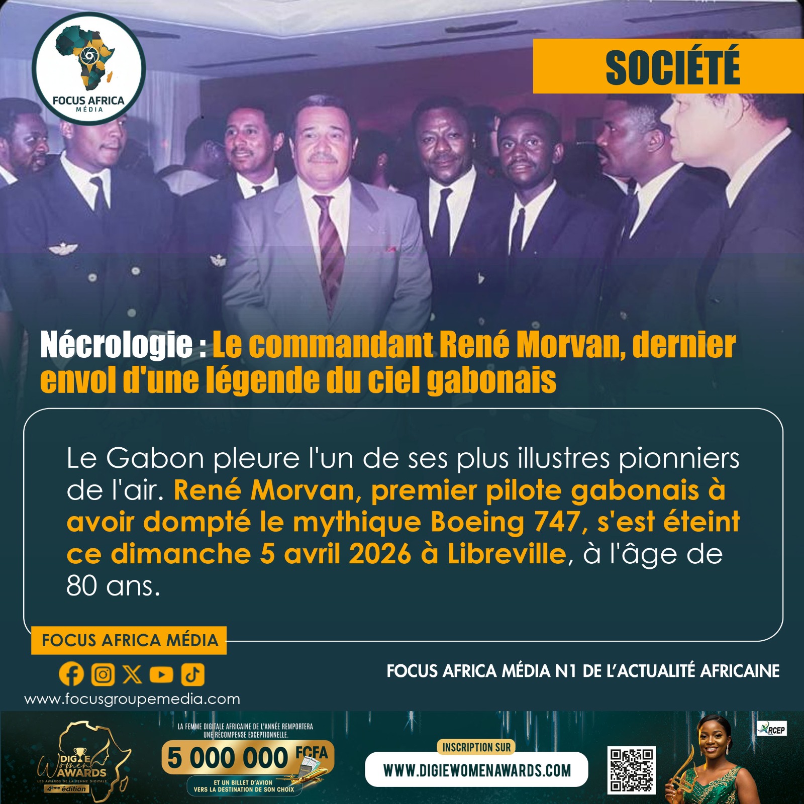 Le Gabon pleure l’un de ses plus illustres pionniers de l’air. René Morvan, premier pilote gabonais à avoir dompté le mythique Boeing 747, s’est éteint ce dimanche 5 avril 2026 à Libreville, à l’âge de 80 ans. Avec sa disparition, c’est une page glorieuse de l’histoire de l’aviation civile nationale qui se tourne, laissant la communauté aéronautique et la nation entière dans une profonde affliction. Figure de proue de l’âge d’or d’Air Gabon, il incarnait à lui seul le prestige et l’ambition d’un pavillon national qui a longtemps fait la fierté du continent.