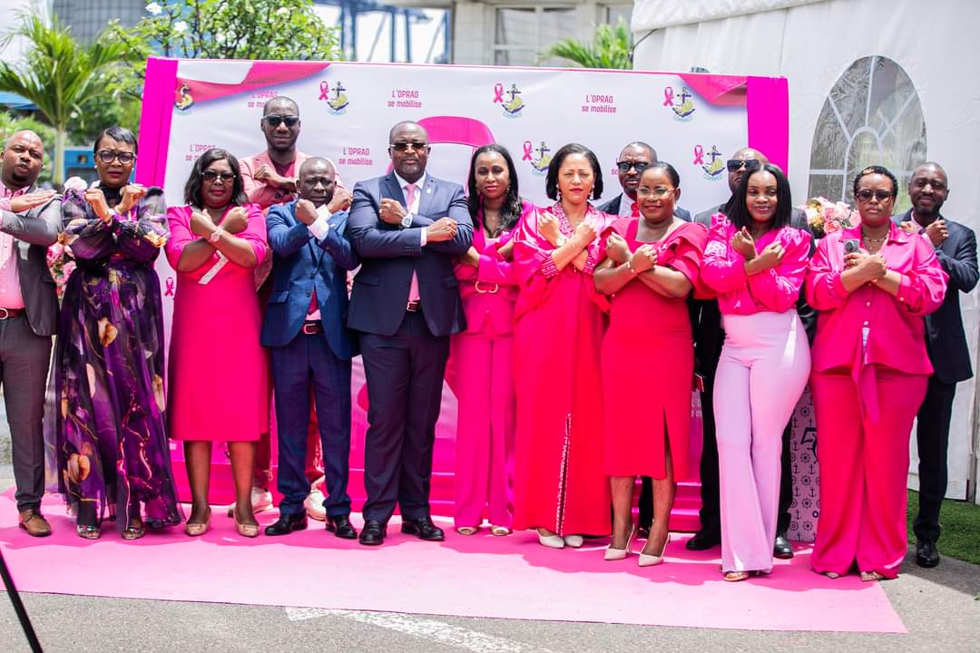 Étaient également présents, le Président du Conseil d’Administration ainsi que le Directeur Général de l’OPRAG et ceux de la Communauté Portuaire. L’un des points culminants de cette cérémonie a été le discours du Directeur Général de l’OPRAG, Monsieur Martin BOGUIKOUMA, qui a mis en avant l’importance de la campagne Octobre Rose, en soulignant son objectif qui est de : sensibiliser et dépister les cancers féminins, en l’occurrence, le cancer du sein et celui du col de l’utérus. Il a insisté sur l’engagement national, sous l’impulsion des plus hautes autorités du pays, en tête desquelles le Président de la Transition, Président de la République, Chef de l’État, SEM Général de Brigade Brice Clotaire Oligui Nguema, dont l’action s’articule autour de la réduction du taux de mortalité liée à ces maladies, avec pour but de les éradiquer d’ici 2030.