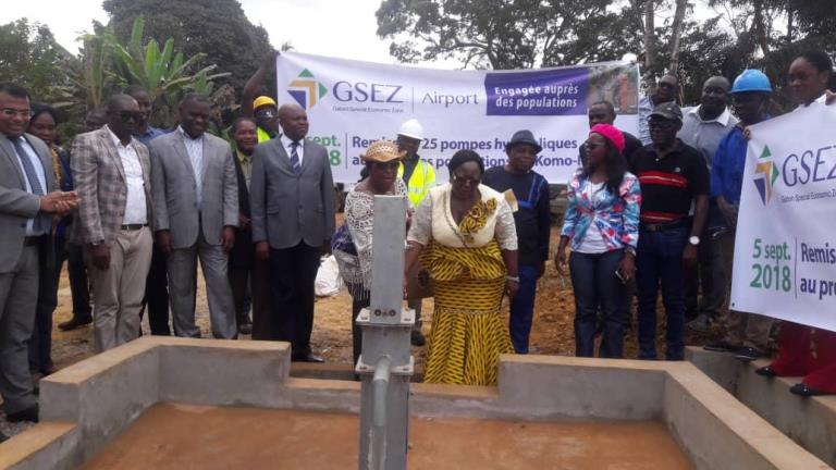Dans le cadre de sa responsabilité sociétale, l’entreprise GSEZ, succursale du groupe singapourien Olam vient d’offrir aux populations du département du Komo-Mondah, 25 pompes hydrauliques. Les ouvrages ont été livrés il y a quelques jours dans la localité de Pleine Ayémé,  à quelques kilomètres de la capitale gabonaise, dans le département du komo-Mondah. Un soulagement pour les populations confrontées depuis des lustres au problème d’accès à l’eau potable. « C’est un geste de sagesse et d’amour. Nous sommes restés longtemps privés d’eau. Aujourd’hui nous sommes soulagés vraiment.  On avait des maladies hydriques parce que l’eau était rare et de mauvaise qualité. Nous sommes délivrés », s’est réjoui l’infirmier major Maléké. Le préfet du département de Komo-Mondah a renchéri : « Ce sont des réalisations qui sont faites dans l’intérêt des populations. Comme on le dit, l’eau c’est la vie, et les pompes hydrauliques viennent régler le problème de manque d’eau potable dans la localité ». BESSEY ]]>