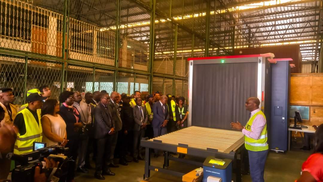 Débutée par la visite des nouveaux postes de contrôle d’accès de l’aérogare et de la zone fret, suivie de la visite du Poste Automobile Routier d’Inspection filtrage (PARIF) dans la même zone, la cérémonie a enfin réunis les représentants de la tutelle ministérielle, de l’Office en tête desquels le Colonel Justin Andouka, son Directeur Général, ainsi que ceux de GSEZ Airport , gestionnaire de l’aéroport dont Igor Simard, Directeur Général sur le site du PIF FRET où le Directeur de l’Exploitation Technique a fait un exposé sur les caractéristiques opérationnelles du RX Fret en présence de l’assistance.