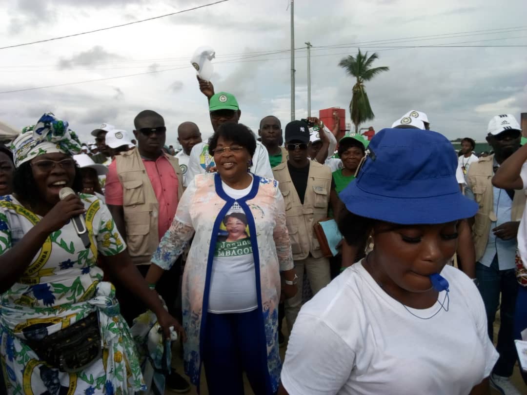 Les populations du quartier Rougier, dans le 2e arrondissement de la commune d’Owendo se sont massivement mobilisées samedi dernier, à l’occasion du meeting d’ouverture de campagne de la candidate aux locales Jeanne Mbagou, membre du bureau politique du parti démocratique gabonais (PDG), qu’accompagnaient Hugues Régis Mayombot et Simplice Nguie, candidats aux élections législatives Lors de ce méga-meeting, Jeanne Mbagou et ses camarades candidats ont reçu le soutien des femmes, des notables et des jeunes, qui ont reconnu tous « le bon  travail » réalisé par la mairesse au cours du mandat qu’elle vient de boucler à la tête de la mairie d’Owendo. Aussi, tous ont promis de voter pour les listes PDG le 6 octobre prochain. Les intervenants ont rappelé les nombreuses réalisations de Jeanne Mbagou parmi lesquelles, la construction d’un jardin public et du grand  marché d’Akournam 2, la construction d’un plateau sportif, l’organisation des activités socioculturelles et sportives, la célébration des mariages groupés, l’érection d’une fontaine publique à Alénakiri et la mise en place d’un surpresseur en partenariat avec la SEEG pour alimenter Awoungou en eau potable entre autres. « Je suis ravie de votre présence massive à ce meeting. Me soutenir c’est bien, mais me voter le 6 octobre 2018 c’est encore mieux. Un appel pour traduire l’émotion en acte de vote dans l’urne. Jeanne Mbagou s’est engagée à ne jamais trahir la confiance de sa base politique et à poursuivre l’œuvre de transformation du 2e arrondissement de la commune d’Owendo. Cette rencontre politique fut également un moment de détente et de réjouissance. Les enfants ont eu droit à des instants magiques à travers des jeux ludiques mis en place à l’occasion. BESSEY]]>