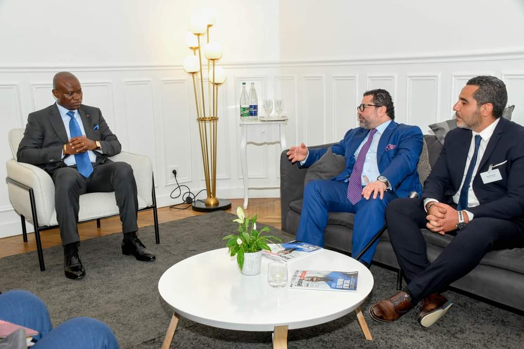Après avoir été accueilli avec triomphe par la communauté gabonaise lors de son arrivée à Paris le 28 mai dernier , le Chef de l’État a entamé une série d’audiences ce jour , en marge de la 1ère édition du Forum des affaires Gabon-France. Le Chef de l’Etat a saisi sa première visite à Paris pour échanger avec monsieur Alsharif Nawaffaiez , Président Directeur Général d’Al Sharif Group Holding .