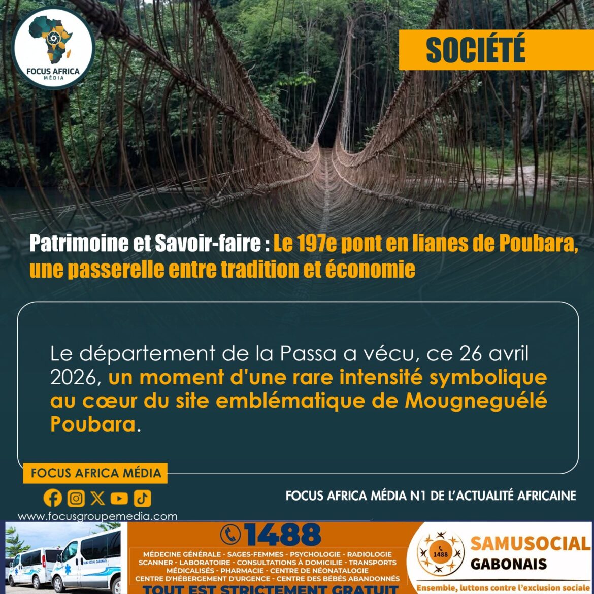 Le département de la M’Passa a vécu, le 26 avril 2026, un moment d’une rare intensité symbolique au cœur du site emblématique de Mougneguélé Poubara. Sous le regard admiratif des populations locales, le Pr Marcelle Ibinga-Itsitsa, Ministre du Tourisme, a procédé à l’inauguration du 197ᵉ pont en lianes, une œuvre d’ingénierie traditionnelle succédant à l’ancien ouvrage devenu vétuste. Bien plus qu’une simple infrastructure de franchissement, ce pont représente le génie créateur de nos terroirs et la résilience d’un savoir-faire ancestral qui continue de défier le temps, s’érigeant désormais comme le fer de lance de l’identité culturelle du Haut-Ogooué.