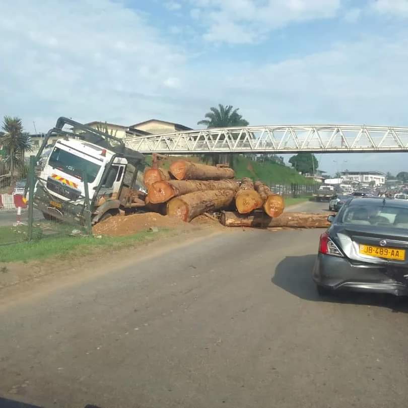En effet, selon plusieurs témoignages, le grumier chargé a échoué sur un talus à Plein ciel (4ème Arr.) à la suite d’une défaillance de son système de freinage causant sur son passage de gros dégâts matériels, roulant dans le sens PK5-Owendo.Le chauffeur du grumier accidenté s’en est sorti saint et sauf mais causant ainsi un énorme embouteillage depuis ce matin. Depuis plusieurs années, les populations citadines estiment que « les grumiers et autres poids lourds devraient avoir un trajet (route) propre à eux, car non seulement ils dégradent très vite les routes, mais ils sont dangereux pour les autres automobilistes et piétons. Ce qui vient de se dérouler aurait pu causer de graves conséquences », a déclaré un riverain.