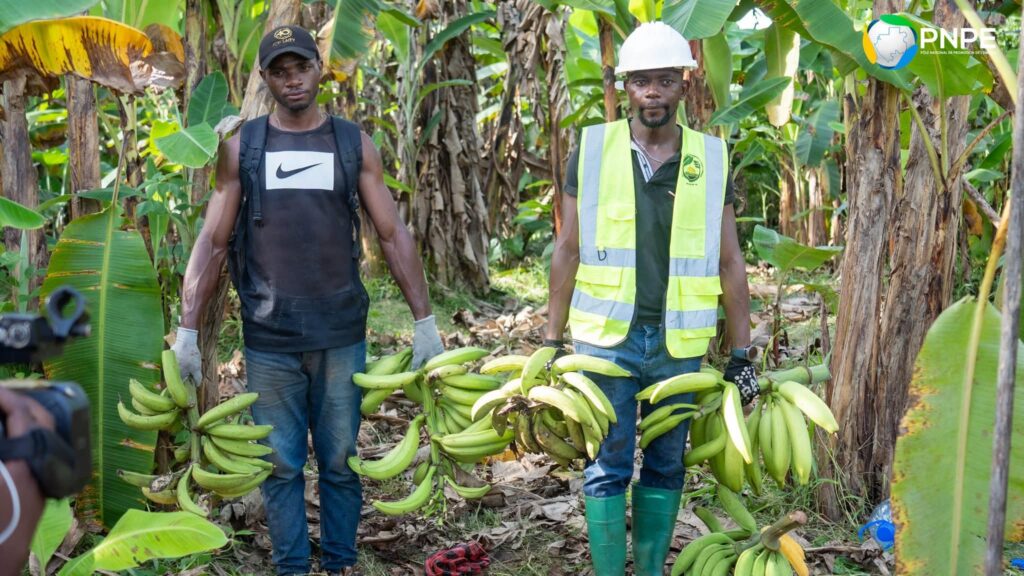 Depuis deux ans, ce jeune entrepreneur transforme un hectare de terre en une bananeraie prospère de 3 000 pieds. Ce choix du « retour à la terre » n’est pas seulement symbolique, il est stratégique. En s’appuyant sur les spécificités biologiques du bananier plantain, capable de s’auto-régénérer par ses propres rejets, l’exploitant a su créer un cycle de production pérenne, minimisant les coûts de réinvestissement tout en maximisant l’occupation spatiale de sa parcelle.Au-delà de l’aspect technique, c’est la viabilité économique du projet qui frappe les esprits. Conscient que la banane figure parmi les cultures les plus consommées à l’échelle mondiale et nationale, Franck Nguema a bâti un modèle d’affaires résilient. Sa stratégie de vente directe aux particuliers lui permet de capter une valeur ajoutée maximale en court-circuitant les intermédiaires traditionnels. Cette approche agile de la chaîne de valeur assure non seulement une rentabilité immédiate, mais offre également la flexibilité nécessaire pour écouler les surplus vers les grossistes lors des pics de production.La réussite de cette exploitation est aussi le fruit d’une synergie institutionnelle exemplaire.