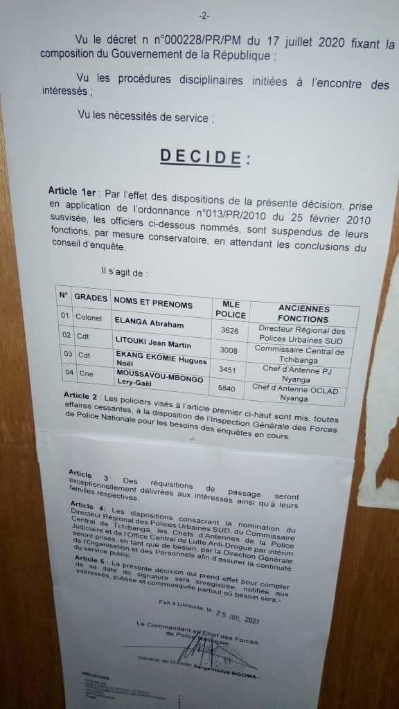 L’attaque armée des forces de Police ce dimanche 25 Juillet à la prison de Tchibanga, fait déjà tomber des têtes de hauts gradés.