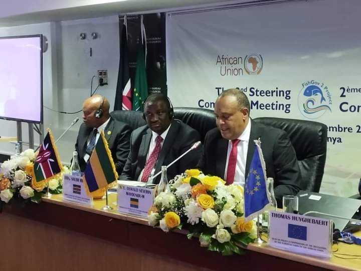 Les travaux du Comité de pilotage du projet Fish Gov2 se sont tenus du 07 au 09 Décembre dernier sous l’égide de l’Union Africaine (UA), à Nairobi la capitale du Kenya, au siège du Bureau Interafricain pour les Ressources Animales (UA-BIRA) en présence notamment du Ministre gabonais de la Pêche et de l’Économie Maritime, Oswald Séverin Mayounou.Présidés par le Ministre Kényan des Mines, de l’Économie Bleue et des Affaires Maritimes, cette rencontre de haut niveau a permis aux participants de faire le point sur l’état d’avancement du projet qui est à sa troisième année et financé par l’Union Européenne (UE).