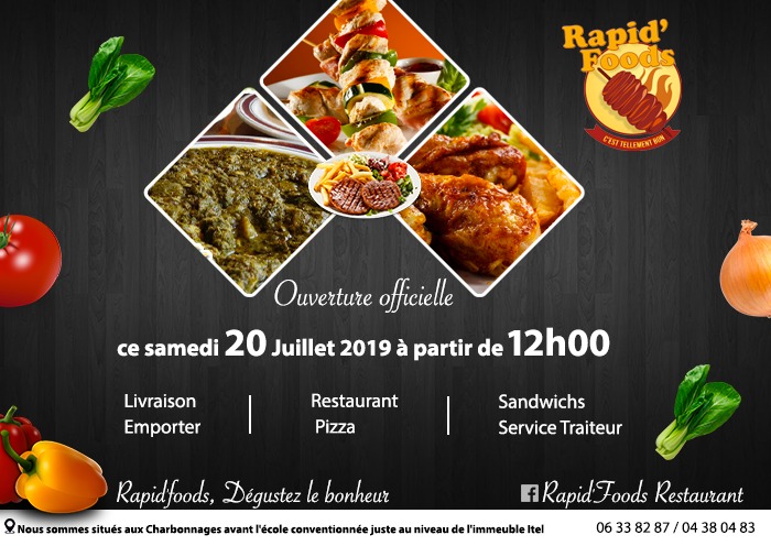 Rapid’Foods vient de confirmer son inauguration à Libreville, plus précisément au quartier charbonnages. L’ouverture est annoncée pour ce samedi 20 juillet 2019 à 12 heures. De quoi y voir des vacances parsemées de bonnes saveurs. Une vingtaine de personnes ont été embauchées pour former l’équipe qui portera haut les recettes et les services dudit lieu.