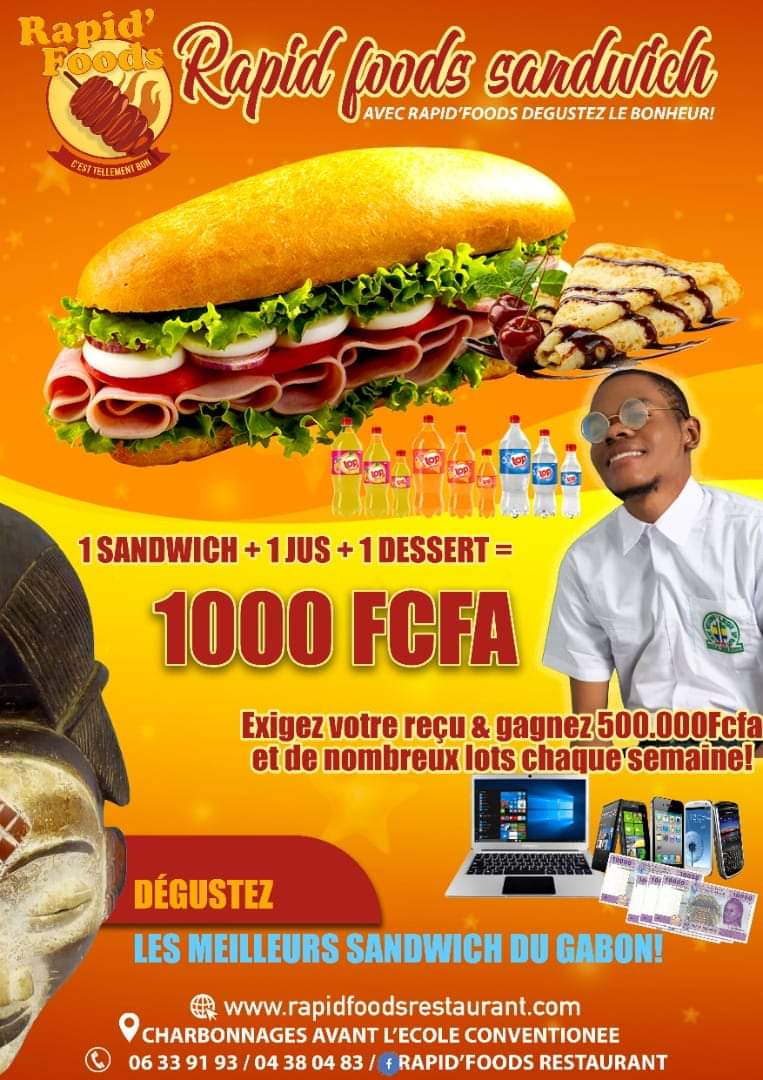 Pour exaucer les vœux de ceux qui ont des goûts audacieux et diversifiés, le restaurant Rapid’foods lance un nouveau service de sandwicherie. La sandwicherie organise une dégustation gratuite ce dimanche 10 novembre courant à la plage du lycée national Léon Mba.