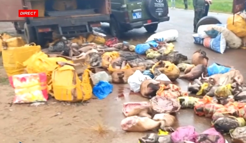 Les agents ont procédé à la saisie de 104 animaux de diverses espèces, démontrant l’ampleur du trafic de gibier de brousse dans la région. Une partie de ce gibier a été exposée, incluant des animaux divers et même un grand python, illustrant la diversité des espèces visées par le braconnage.Outre la faune, les agents ont également intercepté plus de 10 grumiers pour non-respect des hauteurs réglementaires de chargement, une infraction courante dans le secteur de l’exploitation forestière. Ces saisies multiples confirment l’efficacité de la stratégie mise en place au poste de contrôle et soulignent la persistance des infractions en matière d’Eaux et Forêts.