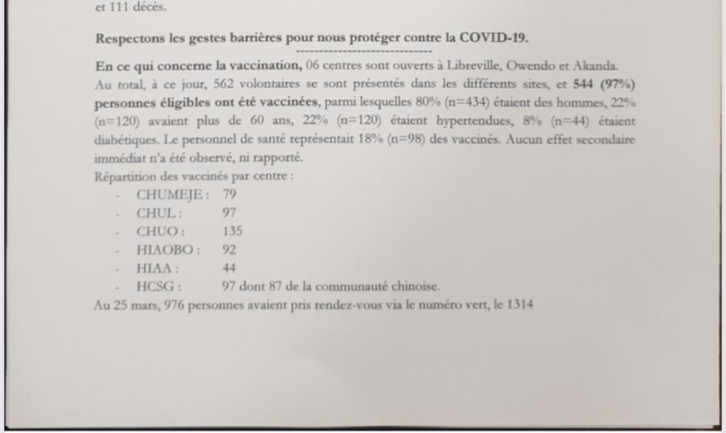 -44 à l’hôpital d’instruction des armées d’Akanda; - 97 à l’hôpital de coopération Sino-Gabonaise.