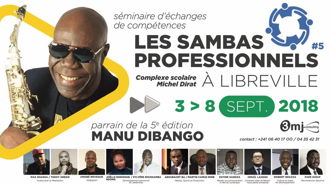 Organisée de mains de maitre par 3MJ.Consulting, la 5e édition du séminaire international des Sambas professionnels aura lieu du 3 au 8 septembre 2018 à Libreville. Pour cette année, l’organisation entend mettre des petits plats dans les grands pour le grand bonheur de la jeunesse africaine. Comme pour les précédentes éditions, les Sambas professionnels donc l’édition 2018 est en préparation seront parrainés par Manu DIBANGO Saxophoniste et grande figure de la culture africaine, avec à son actif plus 60 ans de carrière musicale. La 5 ème édition du séminaire d’échanges de compétences qui offre à la jeunesse africaine depuis quatre ans des outils nécessaires pour se mouvoir dans les différents domaines de la vie professionnelle s’annonce à grande pompe. C’est du moins ce que l’on peut retenir de la campagne d’information instituée par Josiane Matené responsable de 3MJ.Consulting à travers ses différentes plateformes de communication numérique . Pour cette édition, c’est plus de six personnalités de renommée internationale qui prendront part à l’évènement, à travers l’animation de plusieurs activités prévues. Repartis en ateliers de 20 personnes par thématique, les formateurs des Sambas Professionnels sélectionnés parmi les meilleurs de leurs domaines édifieront la jeunesse africaine sur les aspects tels que : « Audiovisuel et Réalisation » avec Max NGASSA – Directeur Ultramax et Teddy GREGO- Réalisateur et Directeur à Ubiznews, – Le « MOBADAY » qui est un moment de rencontre et de partage entre les participants et Amobé MEVEGUE – Fondateur de Ubiznews dans le but de permettre à ceux-ci de profiter des opportunités qu’il offre à la jeunesse. – Le Développement personnel et Leadership sera le rendez-vous avec Joëlle EDEDEGHE NDONG – Journaliste-reporter à Canal+ et Directrice du média en ligne « All Sud » et Sylvère BOUSSAMBA – Fondateur de l’ONG Ogooué Labs Aboubacry BA – Directeur Général de CIS Médias et Martin Camus MIMB – Directeur de Radio sports infos pour leurs parts s’occuperont de l’atelier « Médias, Sports et Production » Estimé SANDZA – Chargé de communication digitale de Vox Médias quant à lui aura la charge de l’atelier « Réussir sa communication à l’ère du numérique » Ismaïl LAHSINI – Dirigeant Fondateur de MENTOR édifiera les porteurs de projets et futurs jeunes entrepreneurs sur la thématique « Comment créer et Réussir votre petite entreprise » Les amoureux de la culture trouveront leur compte dans l’atelier « Culture et enjeu du développement » animé par Robert BRAZZA – Journaliste et Présentateur à CANAL+ « La Reconversion sportive » est l’innovation de cette édition et sera animé par Pape DIOUF – Consultant sportif et ancien président de l’OM qui était d’ailleurs le parrain de la 4éme édition. Selon Josiane Matene, pour s’inscrire « il suffit de choisir un atelier, préparer ses frais de participation qui est une modeste participation qui nous aide à prendre en charge nos professionnels même si ça ne représente même pas le 1/1000 ème de nos charges, appeler au +241 06 40 17 00 / 04 35 42 31 » Pendant ces 5 jours la capitale gabonaise vibrera au rythme de l’échange et du partage à travers ce rendez-vous du donner et du recevoir qui depuis sa création en 2014, est devenu un programme annuel d’échange de compétences à l’échelle nationale et sous régionale. Rappelons qu’en mai 2017, sa promotrice, Josiane Matene avait reçu, du président de la République, Ali Bongo la médaille de chevalier d’ordre national du Mérite Pablo GUISSAMBA ]]>