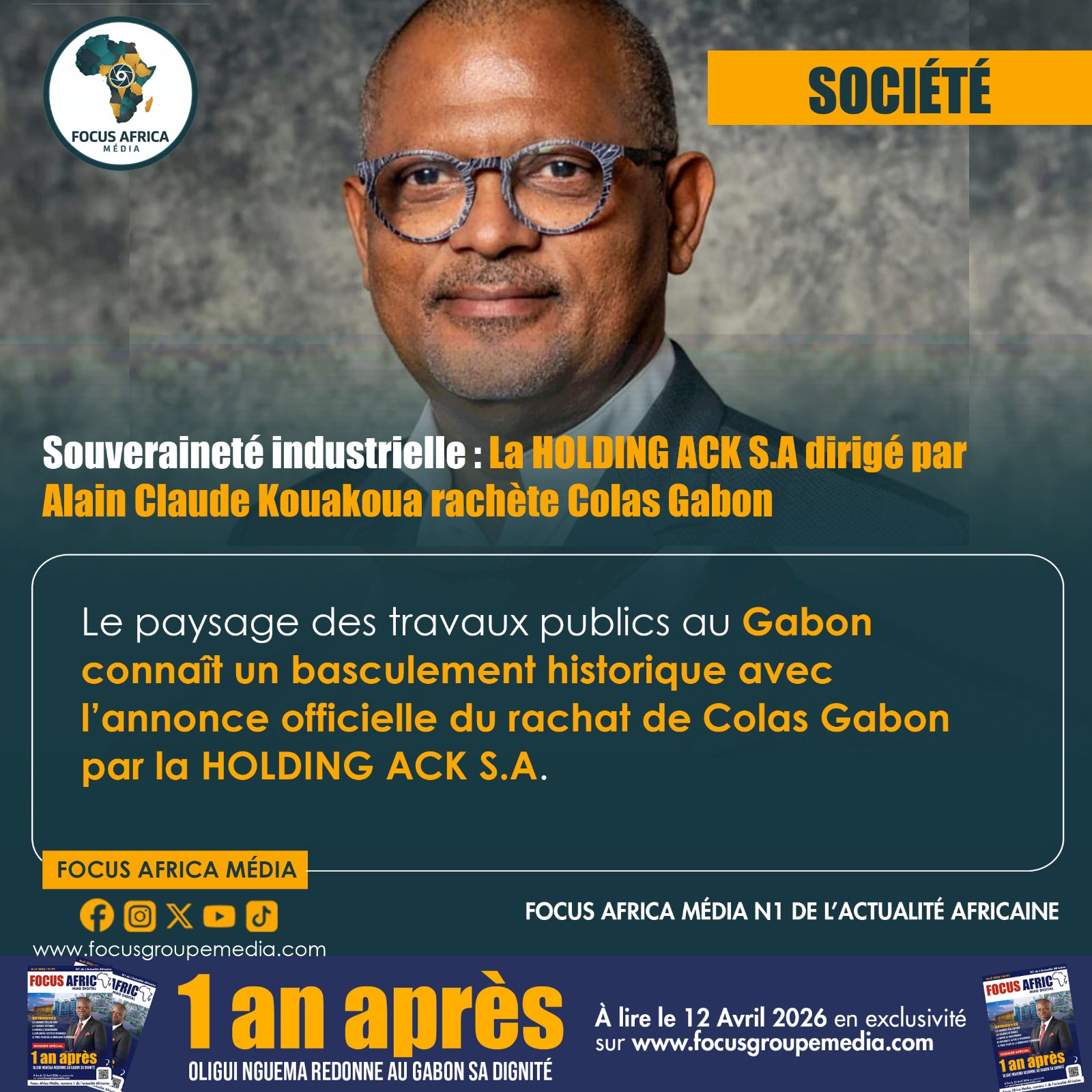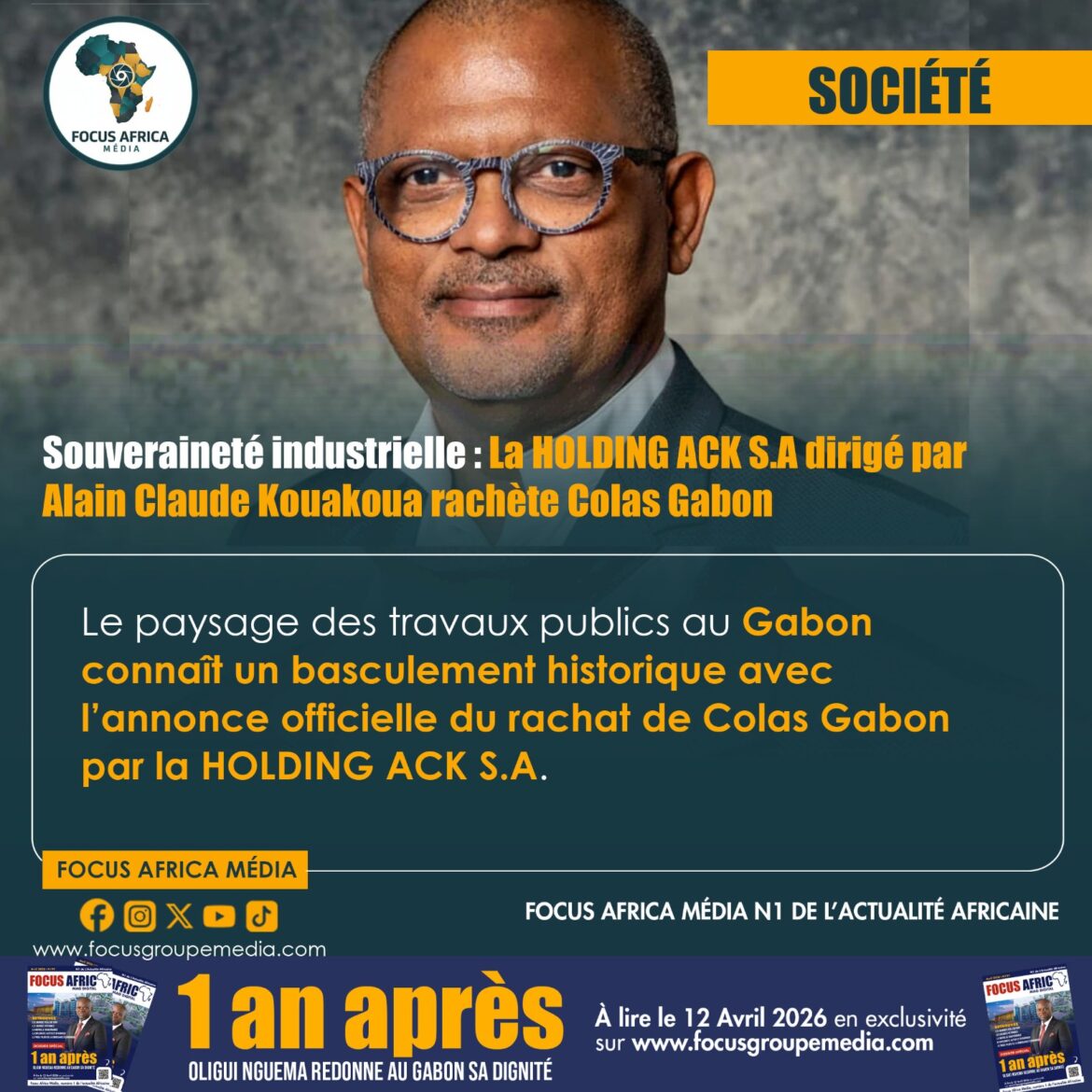 Accueil SOCIÉTÉSouveraineté industrielle : La HOLDING ACK S.A dirigée par Alain Claude Kouakoua rachète Colas Gabon