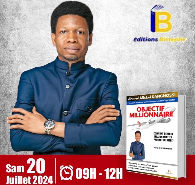 À cet effet, la cérémonie solennelle de présentation de l’ouvrage intitulé «Objectif Millionnaire, comment devenir millionnaire en partant de Rien» de l’auteur Ahmed Mickel DANGNOSSI, se tiendra le Samedi 20 Juillet 2024 à partir de 9h00 au siège de SING SA derrière BGFI immeuble Premium au centre ville, Libreville. Selon l’invitation adressée aux invités, «Vous aurez droit à une présentation spéciale et globale du livre, des photos avec l’auteur et une dédicace de l’auteur à l’achat de l’ouvrage à lire absolument».