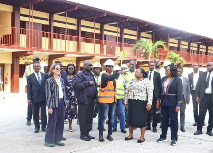 Accueil EDUCATIONSuivi et achèvement des travaux d’extension et de réhabilitation : Camelia Ntoutoume-Leclerq sur les nouveaux plateaux sportifs de trois établissements