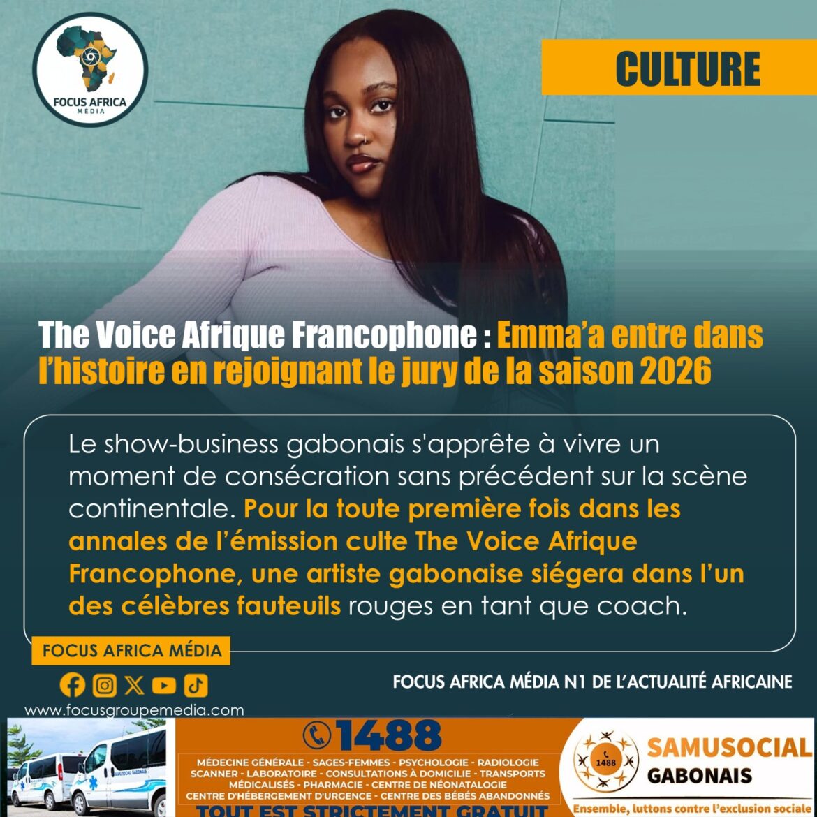 En passant du statut de révélation à celui de juge pour l’un des concours de chant les plus suivis au monde, elle ne porte plus seulement sa carrière, mais l’espoir et la fierté de tout le peuple gabonais.L’arrivée d’Emma’a dans cette aventure télévisuelle transforme radicalement la perception de l’industrie créative du pays. En devenant une figure d’autorité vocale pour des millions de téléspectateurs, elle offre au « Label Gabon » une visibilité diplomatique et culturelle de premier plan. Selon des sources proches de la production, si la date exacte du lancement de cette nouvelle saison est encore tenue secrète, l’impatience grandit au sein du public qui attend de découvrir la « patte » de la jeune prodige dans l’exercice complexe du coaching. Sa voix unique et son sens inné de la mélodie seront, sans nul doute, des atouts majeurs pour dénicher la perle rare de cette édition.Au-delà de la performance artistique, ce rôle de jurée consacre Emma’a comme un modèle de réussite pour la jeunesse africaine. Son parcours démontre qu’avec du travail et une vision claire, les frontières géographiques s’effacent devant le talent. En siégeant aux côtés de monuments de la musique africaine, elle prouve que la valeur n’attend pas le nombre des années et que le Gabon est désormais une terre de leaders d’opinion culturelle.