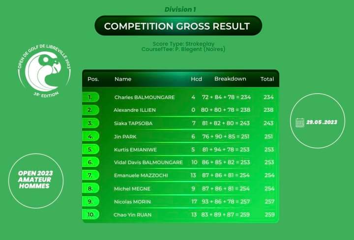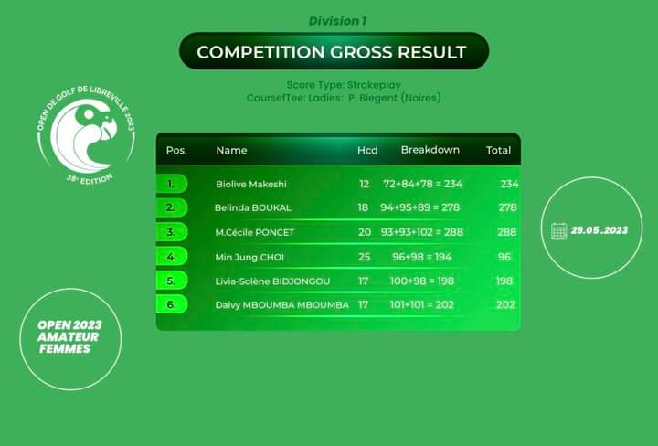 La fédération gabonaise de Golf en partenariat avec le Golf club de Libreville ont su mettre les bouchées doubles, les petits plats dans les grands, afin que cette 38ème Édition soit une réussite totale. Le rendez-vous a été donné pour l’année prochaine.