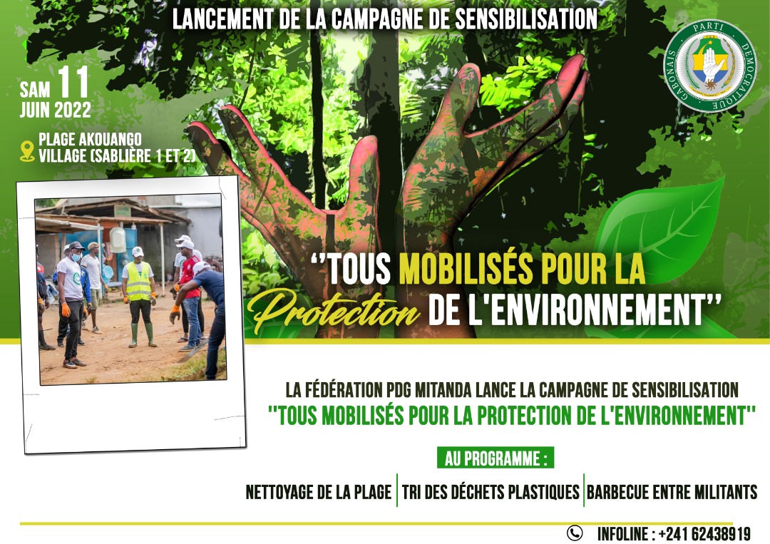 Pour répondre à l’appel du Haut-Commissariat à l’Environnement et au Cadre de Vie , Nze Souala Hercule , Militant Actif du Parti Démocratique Gabonais et fervent soutien de la politique du Distingué Camarade Président Ali Bongo Ondimba, a initié dans la commune d’Akanda, 1er campement, Fédération Mitanda du PDG , une journée de sensibilisation »tous mobilisés pour la protection de l’environnement » ce Samedi 11 Juin 2022.