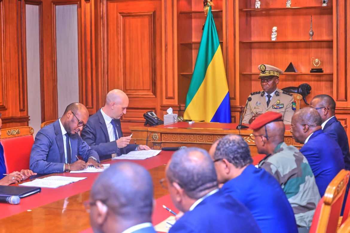 Libreville , le 12 mars 2024,le Président de la Transition, Président de la République, Chef de l’Etat, le Général Brice Clotaire Oligui Nguema a dirigé la cérémonie de signature de convention entre Afrijet et l’État gabonais via la société Fly Air Gabon Holding, en présence de son Directeur général Linda Binta Mandji epse Lespinas.