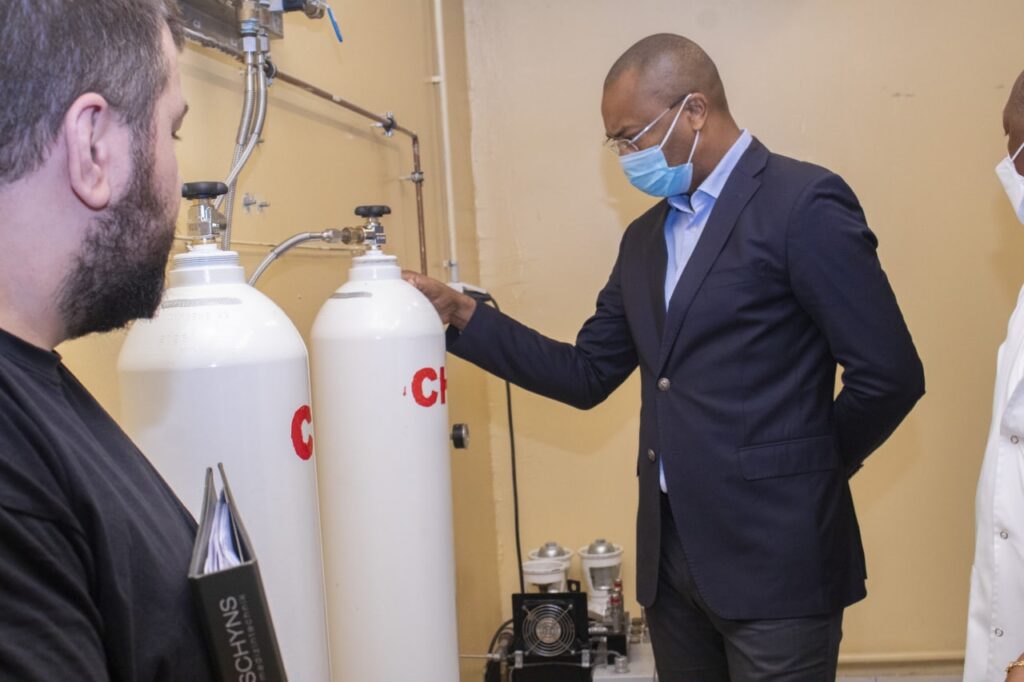 Cette visite de terrain consistait pour le ministre et sa délégation de se rendre compte des travaux d’installation des centrales d’oxygène à usage médical des centres hospitaliers universitaires d’Owendo et de Libreville. Ces centrales d’oxygène auront pour objectif d’améliorer et de renforcer de façon efficiente l’offre de soins sanitaires au sein de ces deux grandes structures publiques. Ces dispositifs médicaux devront permettre d’améliorer la prise en charge en soins intensifs,au bloc opératoire et en salle de réanimation des personnes hospitalisées en ces services.