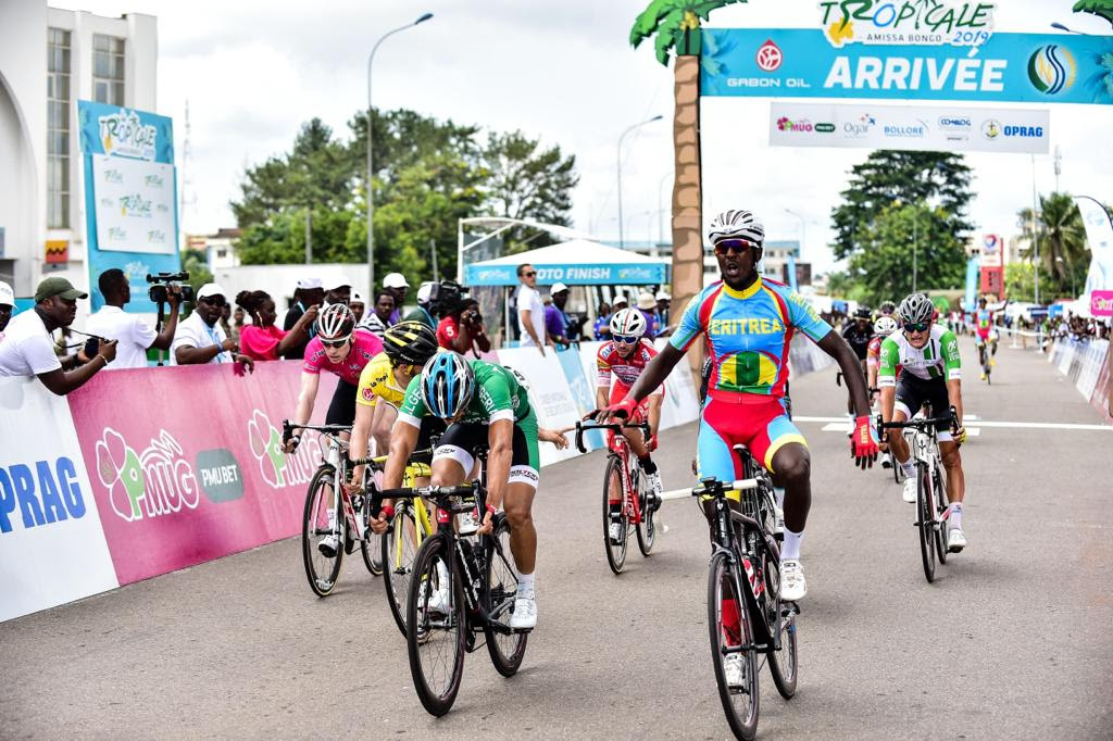 Alors qu’on s’attendait à la première victoire du sprinter allemand André Greipel aujourd’hui, à la 3e étape de la Tropicale Amissa Bongo, c’est un jeune érythréen, GIRMAY HAILU,  18 ans qui a doublé tout le monde sur la ligne pour décrocher son premier succès sur une épreuve UCI. Digne héritier de Daniel Teklehaimanot présent ici comme leader de l’équipe nationale d’Erythrée, le jeune coureur n’a fait complexe face aux meilleurs sprinters professionnels. Il a su attendre le bon moment pour passer sur la ligne les cadors qui ne s’étaient pas méfié de lui. Les équipes professionnelles avaient pourtant imaginé avoir fait le plus dur en revenant sur le dernier échappé, le Camerounais Clovis Kamzong à seulement 5 kilomètres, dernier rescapé d’une longue fugue de 5 coureurs. Tout semblait alors en place pour offrir aux professionnels une bagarre de grande facture mais c’était sans compter sur ce jeune inconnu. Il pourra longtemps se vanter d’avoir accroché à son tableau de chasse des champions comme Greipel, Bonifazio et Manzin habitués des plus grands sprints sur les épreuves mondiales. L’Italien Niccolo Bonifazio conserve son maillot jaune de leader. RAMA]]>