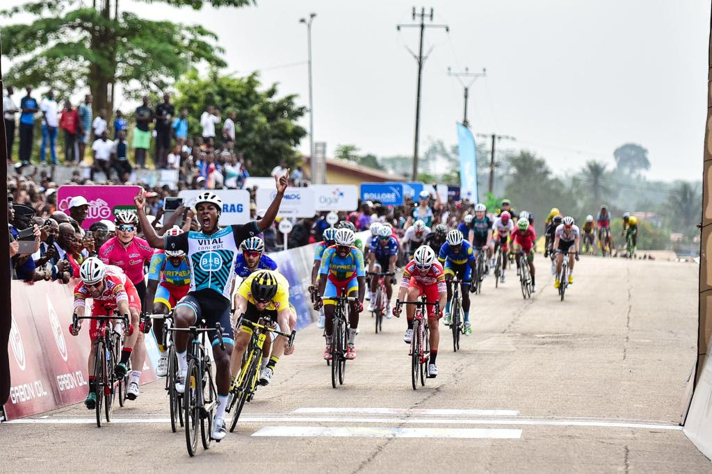 Le jeune sprinter de l’équipe française Vital Concept-B&B Hotels, Lorrenzo Manzin a remporté jeudi, la 4e étape de la Tropicale après un final très rapide dans les rues d’Oyem, contrôlé par ses équipiers qui tenaient à le placer dans les meilleures conditions. Il a battu deux Italiens Niccolo Bonifazio et Matteo Pelucchi devant André Greipel. L’Allemand abonné aux places d’honneur sur cette Tropicale n’a pas pu encore exprimer tout son talent. Lorrenzo Manzin a trouvé l’ouverture pour la première fois de la saison pour le compte de l’équipe Vital Concept-B&B Hotels qui était venue au Gabon avec des ambitions légitimes pour son coureur originaire de la Réunion. «C’est une belle victoire, affirmait Yvonnick Bolgiani son directeur sportif, ça concrétise tout le travail effectué par toute l’équipe aujourd’hui.» L’échappée du jour avait à peine pu atteindre les deux minutes d’avance, à cause justement de ces équipes de sprinters, celle du vainqueur mais aussi celle du maillot jaune Niccolo Bonifazio, Direct Energie et celle du grand favori des sprints André Greipel, Arkéa-Samsic. Si les trois équipes avaient uni leurs forces c’est aussi parce que la Tropicale est devenue le terrain de chasse des sprinters, pour le plus grand plaisir des nombreux spectateurs ravis de ce spectacle de grande envergure. RAMA]]>