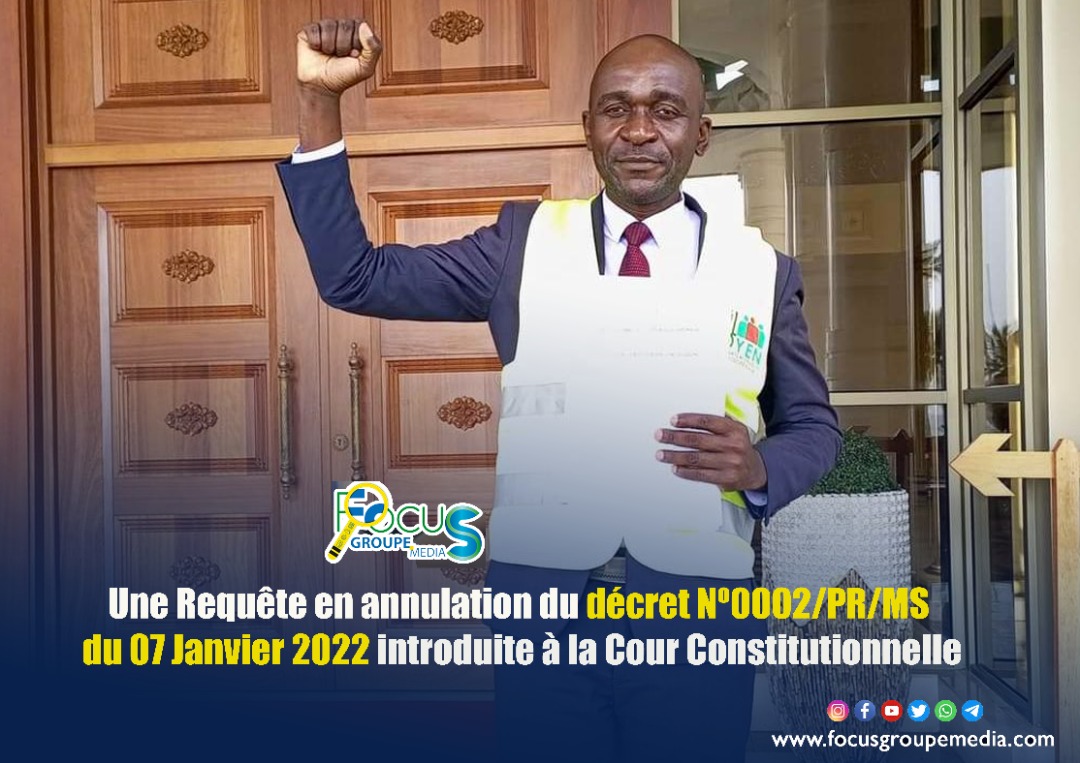 Huit jours après le dernier conseil de ministres qui a annoncé l’adoption par le gouvernement du projet de décret Nº0002/PR/MS du 07 janvier 2022, voilà que des membres de la société civile regroupés autour de la plateforme »Copil Citoyen » viennent d’introduire une requête en annulation du dit décret.